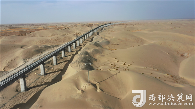 西部決策網(wǎng)訊 9月27日上午,在新建和田至若羌鐵路新疆民豐縣境內(nèi)段的施工現(xiàn)場,隨著直鋪機(jī)將最后60米鋼軌推進(jìn)落地,由中鐵第一勘察設(shè)計(jì)院集團(tuán)有限公司總體勘察設(shè)計(jì)的和若鐵路宣告鋪軌完成,標(biāo)志著世界上首條環(huán)沙漠鐵路正式閉環(huán)。