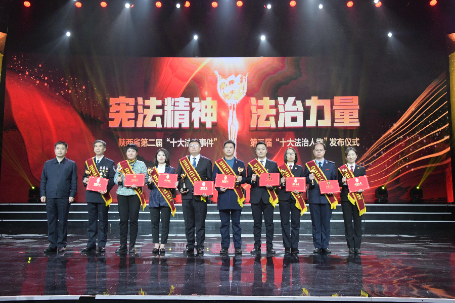 發(fā)布儀式現(xiàn)場播放了“十大法治事件”“十大法治人物”及提名獎的先進(jìn)事跡短片,揭曉了陜西省第二屆“十大法治事件”、第三屆“十大法治人物”及提名獎獲得者。“全國首創(chuàng)黨委(黨組)書記點(diǎn)評法治工作機(jī)制切實(shí)夯實(shí)‘一把手’履行法治建設(shè)責(zé)任”等10個事件被評為第二屆“十大法治事件”、“陜西出臺自由貿(mào)易試驗(yàn)區(qū)條例助推自貿(mào)區(qū)高質(zhì)量發(fā)展”等10個事件被評為第二屆“十大法治事件”提名獎,西安交通大學(xué)法學(xué)院二級教授馬治國等10名同志被評為第三屆“十大法治人物”、咸陽市中級人民法院速裁中心主任李春麗等10名同志被評為第三屆“十大法治人物”提名獎。