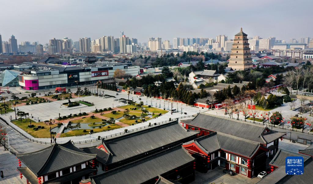 12月28日拍攝的西安市大雁塔周邊區(qū)域(無人機照片)。新華社記者 陶明 攝