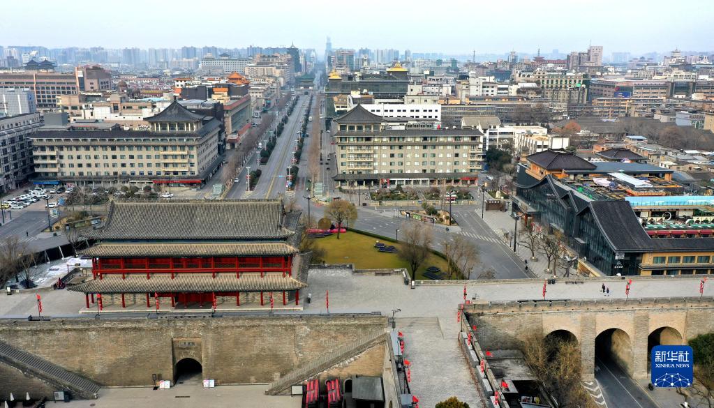 12月28日拍攝的西安市永寧門附近區(qū)域(無人機照片)。新華社記者 陶明 攝