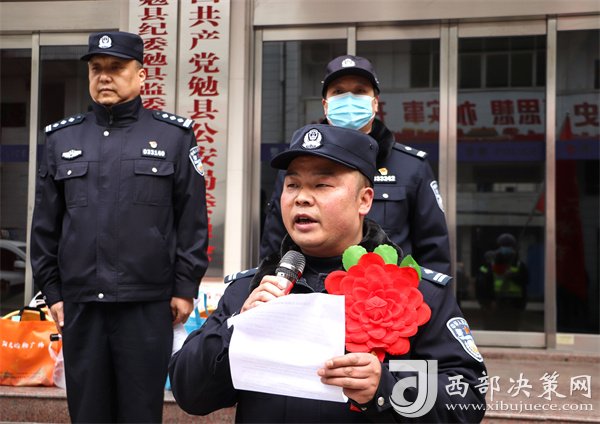 西部決策網(wǎng)訊在當(dāng)前疫情防控的關(guān)鍵時(shí)期,勉縣公安局全體民輔警積極響應(yīng)縣局黨委號(hào)召,準(zhǔn)備隨時(shí)奔赴抗疫一線(xiàn),堅(jiān)決確保人民生命健康安全和社會(huì)大局安全穩(wěn)定,1月3日上午,勉縣公安局抽調(diào)30名民輔警組成疫情防控應(yīng)急先鋒隊(duì)舉行宣誓儀式。副縣長(zhǎng)、局黨委書(shū)記、局長(zhǎng)陳玉存出席并講話(huà),局黨委委員、副局長(zhǎng)余洪波主持宣誓儀式。局黨委委員、駐局紀(jì)檢組組長(zhǎng)張建鴻;局黨委委員、副局長(zhǎng)蔣軍;局黨委委員、政工室主任李建軍參加儀式。