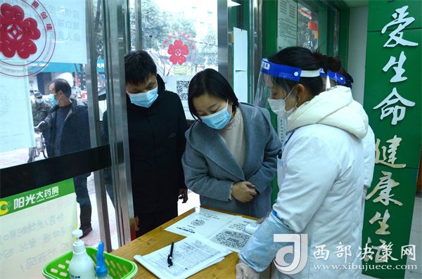 胡敏深入縣城艾斯大酒店、華盛超市、陽光大藥房等多家經(jīng)營單位,實地督查超市掃碼測溫、佩戴口罩、設(shè)置一米線等疫情防控措施落實情況,了解市場物資供應(yīng)、穩(wěn)定物價等情況;檢查酒店測溫登記、人員入住、消毒殺菌、供餐等情況;了解醫(yī)療防護(hù)用品價格和儲備、“四類藥品”管控等情況。