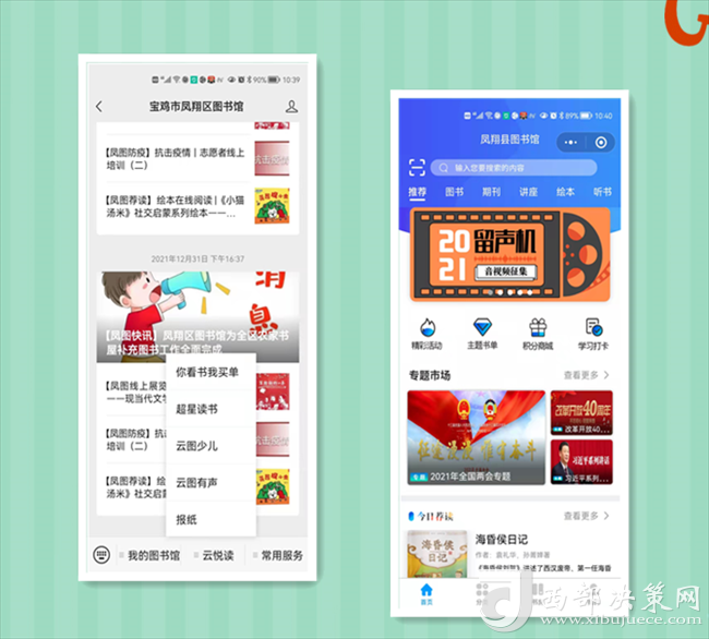 閉館不閉網(wǎng),線上服務(wù)不打烊。自12月23日閉館以來,區(qū)圖書館整合各類數(shù)字資源,免費(fèi)提供豐富的線上服務(wù),滿足不同年齡群體讀者的閱讀需求,更新“超星閱讀”APP,電子書、數(shù)字期刊、講座、繪本、聽書等海量資源為讀者提供高質(zhì)量的閱讀福利。利用“陜西數(shù)字文化網(wǎng)”“鳳翔區(qū)圖書館官方網(wǎng)站”“鳳翔區(qū)圖書館”公眾微信號(hào),線上開設(shè)【鳳圖戰(zhàn)疫】【鳳圖薦讀】【紅色故事繪】【館員姐姐講故事】【館員有聲薦讀】【鳳圖文苑】等閱讀服務(wù)專欄,提供疫情防控知識(shí)、繪本閱讀、親子故事講讀、線上展覽等,讀者通過關(guān)注“寶雞市鳳翔區(qū)圖書館”公眾號(hào)、網(wǎng)站享受24小時(shí)線上服務(wù),通過鳳翔區(qū)圖書館總分館群,將這些優(yōu)質(zhì)數(shù)字資源向基層分館輸送,讓廣大讀者暢享“云端閱讀”。