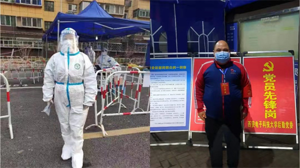“我聽說急需志愿者,就報名了,當(dāng)時也沒顧上害怕,就想著做點兒什么,能做一點是一點”,物理與光電工程學(xué)院黨委書記獨國社已有近27年的黨齡,現(xiàn)在,他又有了一個新的身份——西電科大社區(qū)44號樓2單元志愿服務(wù)小組組長,“第一天去的時候已經(jīng)看到隔離帶拉起來了,單元樓門口也封起來了,有很多穿著防護(hù)服的社區(qū)志愿者、醫(yī)護(hù)人員正準(zhǔn)備上樓去挨家挨戶給做核酸,那個時候會有一些緊張,但看到他們義無反顧,想到樓上的教職工們可能也會有些害怕,我就覺得我得調(diào)整好自己,確保一個飽滿的狀態(tài)為他們服務(wù)”。