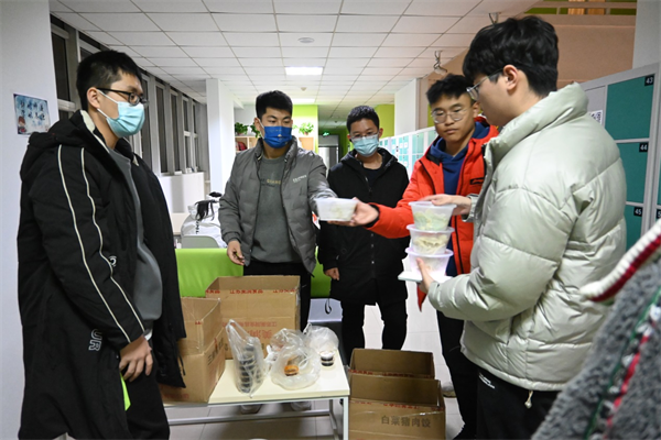 為了讓同學(xué)們在外求學(xué)的第一個冬至過的有意義,羅慶輝與班委們精心策劃,用班費提前在餐廳預(yù)定了106份水餃,他們做好分工、分組分批送達(dá)同學(xué)們手中。“由于疫情原因,我們班級原本計劃的冬至集體包餃子活動不得不取消了,我想盡可能的彌補這個遺憾,讓同學(xué)們在冬至仍然能吃得上餃子,而且吃上屬于我們班級的餃子。”羅慶輝說道。
