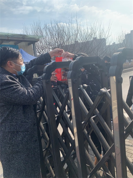 南校區(qū)家屬區(qū)開始封閉管理,一些租住在家屬院的已退宿延期畢業(yè)學(xué)生由于不會做飯,就餐成了難題,于是,輔導(dǎo)員楊笑宇化身“外賣小哥”,前往食堂、超市、面包店采購一大包食品和生活用品,透過家屬區(qū)的大門交到學(xué)生手中,解決了學(xué)生的溫飽難題。