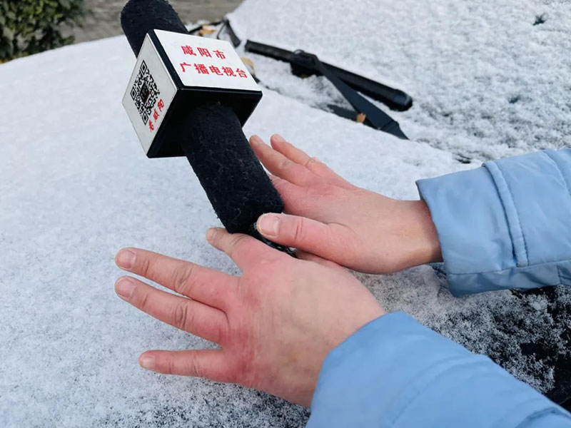 2021年12月26日,冒著風雪嚴寒在戶外連續(xù)工作幾個小時,咸陽市廣播電視臺記者王倩的雙手凍得通紅。