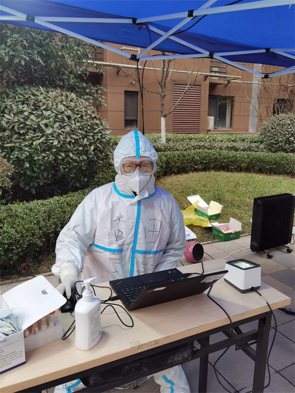 “街坊們,來(lái)來(lái)來(lái)!做核酸檢測(cè),請(qǐng)先到這邊來(lái)登記。”身處經(jīng)開(kāi)區(qū)的劉璇和向權(quán)在接到公司黨委號(hào)召后,積極申請(qǐng)參與白樺林社區(qū)的抗“疫”志愿服務(wù)。向權(quán)是一位湖南籍的小伙,和劉璇都是單位的青年職工,作為青年情侶抗“疫”志愿者的他們,主動(dòng)為社區(qū)居民提供貼心服務(wù),認(rèn)真做好維護(hù)現(xiàn)場(chǎng)秩序、協(xié)助登記信息、宣傳防疫知識(shí)、排查統(tǒng)計(jì)居民困難等工作,積極充當(dāng)著守門(mén)員、宣傳員、信息監(jiān)督員和跑腿員,用青春力量構(gòu)建起一條條保障防線(xiàn)。“疫”路難行,你我同在,兩人在服務(wù)過(guò)程中耐心的勸導(dǎo)、詳細(xì)的詢(xún)問(wèn)和解答都得到了小區(qū)居民的一致好評(píng)。“在一次排查獨(dú)居老人困難情況時(shí),碰到一位曾從事水利工程工作的87歲清華畢業(yè)老人,這位老人與我們分享了很多工作事跡。”向權(quán)分享這一幕經(jīng)歷時(shí)他覺(jué)得無(wú)比親切與感動(dòng)。