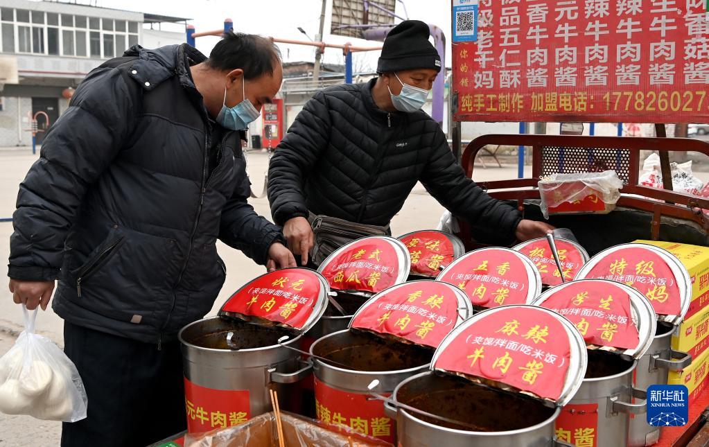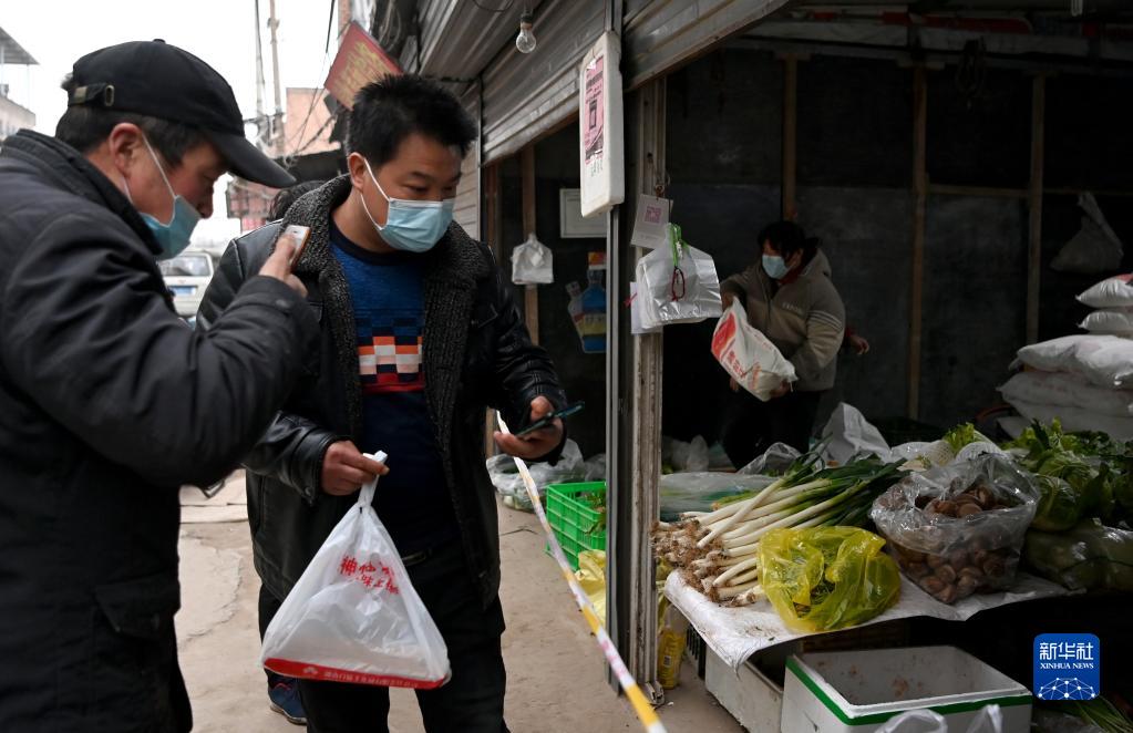 1月7日,西安市未央?yún)^(qū)西唐寨村村民在購(gòu)買食品。