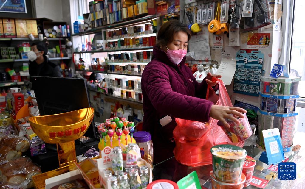 1月7日,西安市未央?yún)^(qū)西唐寨村村民在超市購(gòu)買商品。
