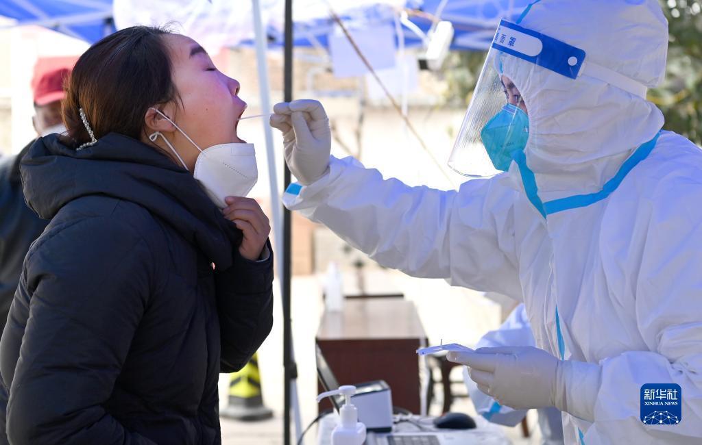 1月7日,西安市未央?yún)^(qū)西唐寨村村醫(yī)在為村民進(jìn)行核酸檢測(cè)。