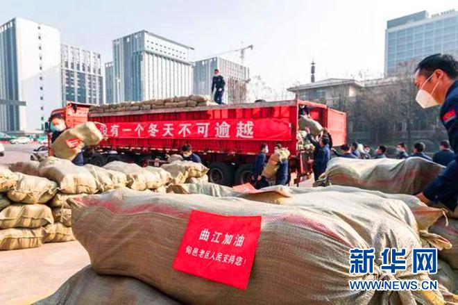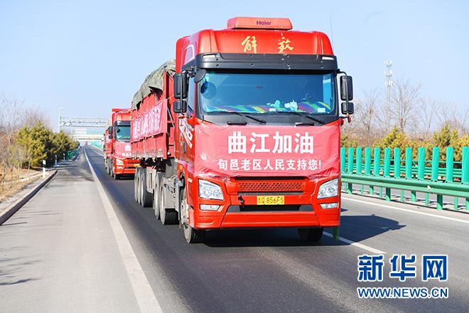 “沒有一個冬天不會過去,沒有一個春天不會到來。”2022年元旦過后,貼著車體標(biāo)語的運(yùn)輸車隊(duì),滿載著30萬陜西旬邑紅色老區(qū)父老鄉(xiāng)親暖暖的情誼直奔西安曲江。