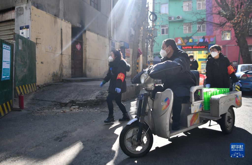 1月12日,三家村工作人員根據(jù)前期摸排情況逐戶(hù)派送午餐。新華社記者 張博文 攝