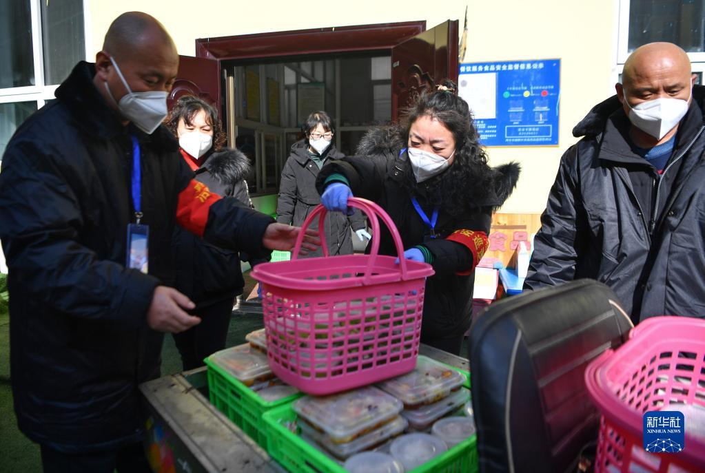 1月12日,三家村工作人員準(zhǔn)備為一戶(hù)居民派送午餐。新華社記者 張博文 攝