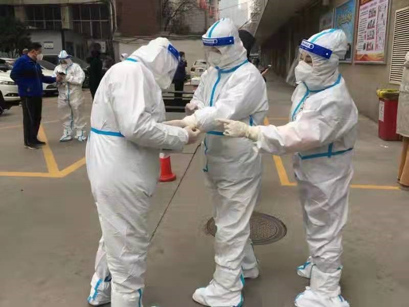 第二天一早,趙惠霞早早趕去碑林區(qū)文藝路街道文北一社區(qū)報(bào)道,開(kāi)始了她志愿者生活。因?yàn)榉雷o(hù)服一旦脫下就會(huì)報(bào)廢,采集核酸樣本的醫(yī)護(hù)人員和志愿者為了不上廁所,都不敢吃飯、不敢喝水,堅(jiān)持到做完核酸才能吃飯。趙惠霞第一天下班回到家后,胃口大開(kāi),一個(gè)大暖瓶的水都喝光了。