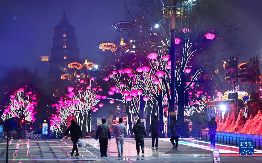 1月21日拍攝的大唐不夜城夜景。新華社記者 陶明 攝