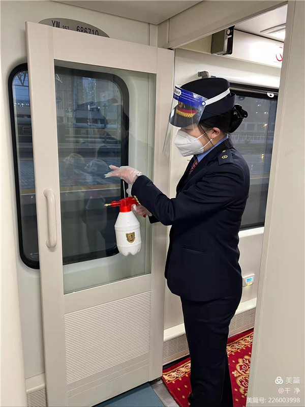 西部決策網(wǎng)訊 正值春運期間,在當(dāng)前疫情防控的嚴(yán)峻形勢下,西安客運段上海一隊上海十組疫情期間一直堅守在一線工作崗位上,帶領(lǐng)班組積極響應(yīng)各項工作部署,嚴(yán)格執(zhí)行集團(tuán)公司和西安客運段疫情防控工作要求,做好列車上的日常消毒、測量體溫等工作,確保疫情防控萬無一失。