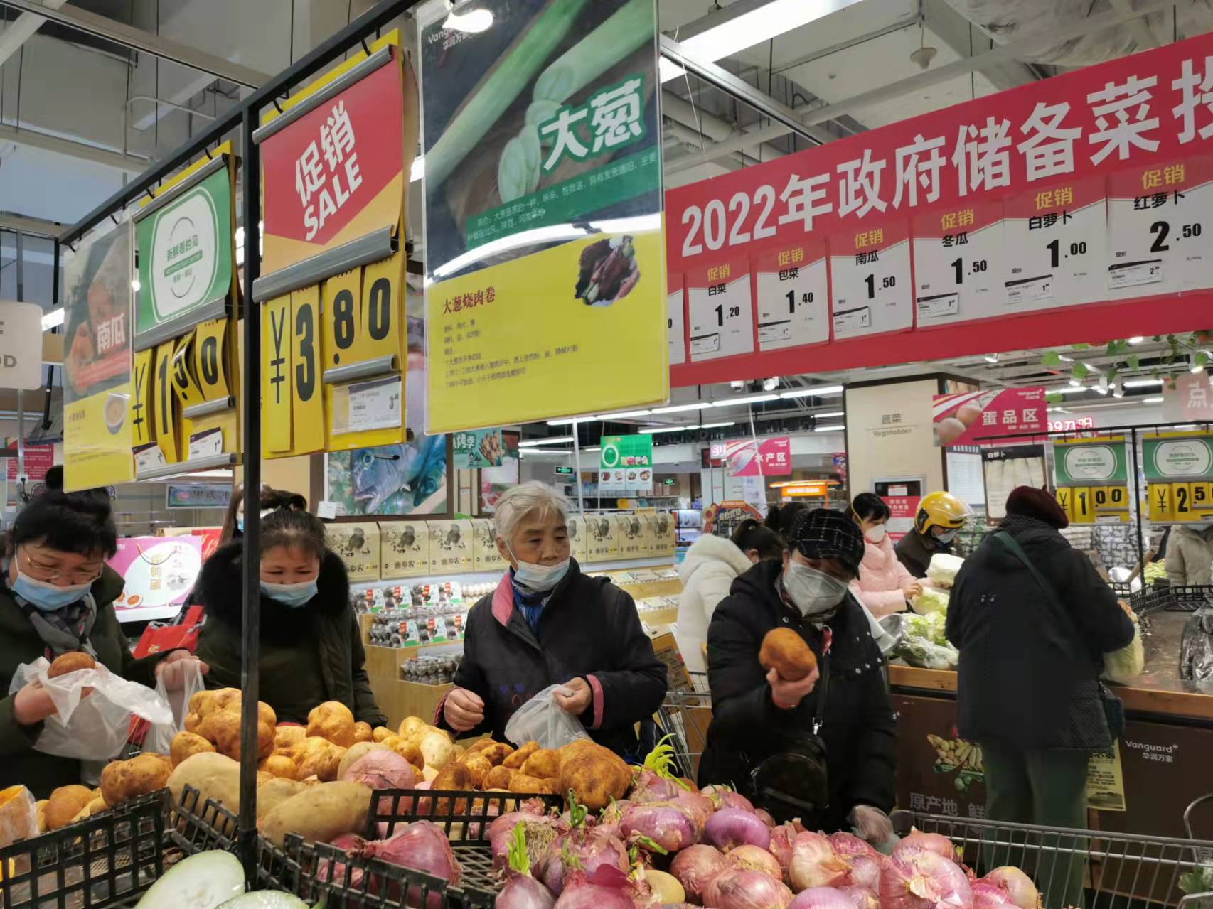 1月24日,市民正在西安一家超市中采購政府投放的儲(chǔ)備菜。新華社記者姜辰蓉 攝