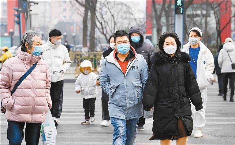 1月20日,市民行走在未央區(qū)未央路斑馬線上。(新華社記者 陶明 攝)