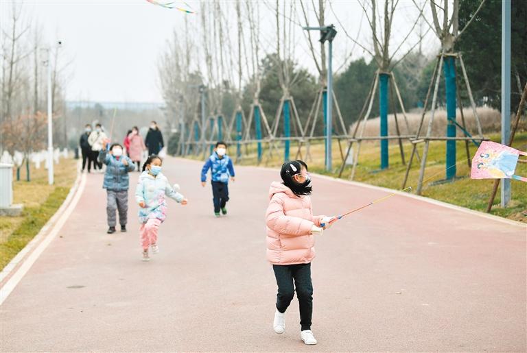 1月20日,小朋友在浐灞生態(tài)區(qū)一處公園內玩耍。(新華社記者 張博文 攝)