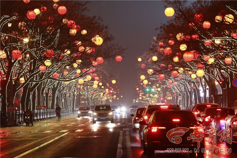 大唐不夜城選取20首唐詩,制作百余組唐詩燈牌,并以燈條的形式裝扮在沿街的樹上,打造夢回大唐的時光隧道。行走于燈下仿佛沉浸在詩歌的海洋里,兩排古樸的樹木在燈光的點綴映襯下,彰顯出喜悅祥和的年節(jié)韻味。