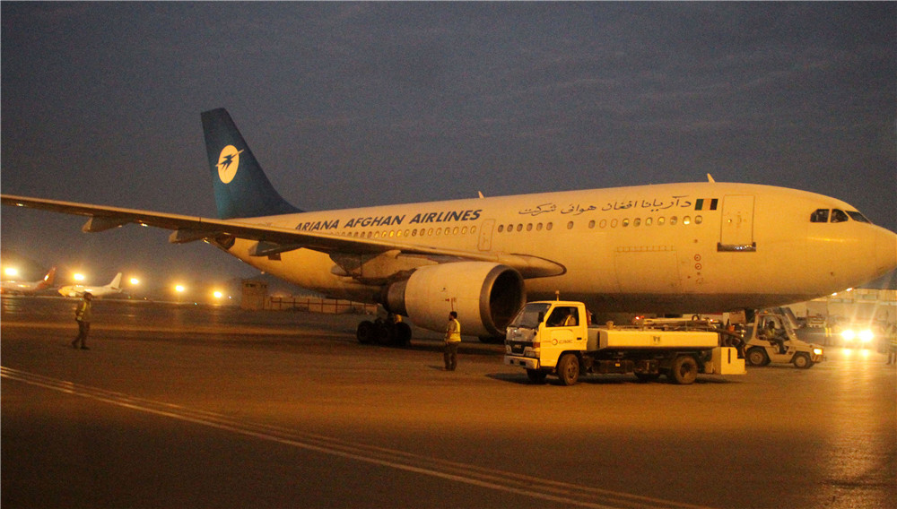 2021年9月29日,載有中國(guó)政府首批對(duì)阿富汗緊急人道主義援助物資的飛機(jī)抵達(dá)阿富汗首都喀布爾國(guó)際機(jī)場(chǎng)。新華社發(fā)(塞夫拉赫曼·薩菲攝)
