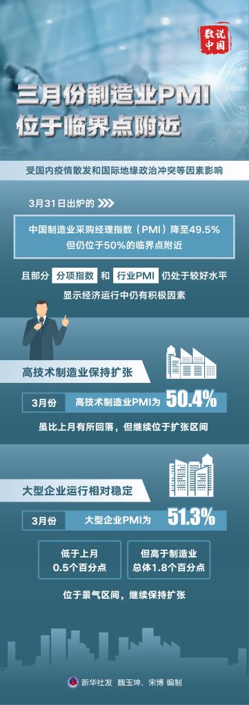 受國(guó)內(nèi)疫情散發(fā)和國(guó)際地緣政治沖突等因素影響,31日出爐的中國(guó)制造業(yè)采購(gòu)經(jīng)理指數(shù)(PMI)降至49.5%,但仍位于50%的臨界點(diǎn)附近,且部分分項(xiàng)指數(shù)和行業(yè)PMI仍處于較好水平,顯示經(jīng)濟(jì)運(yùn)行中仍有積極因素。