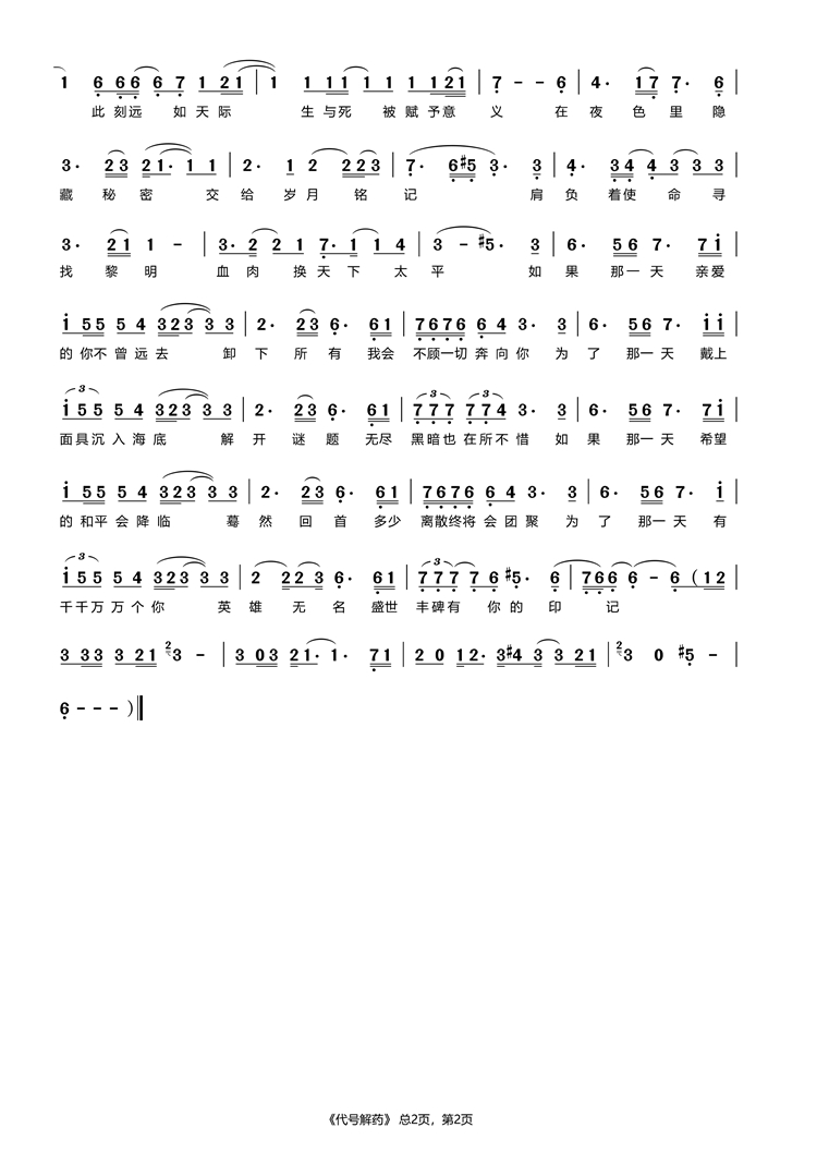 慶祝建黨百年獲獎歌曲作品選集——《英雄無名》歌詞。