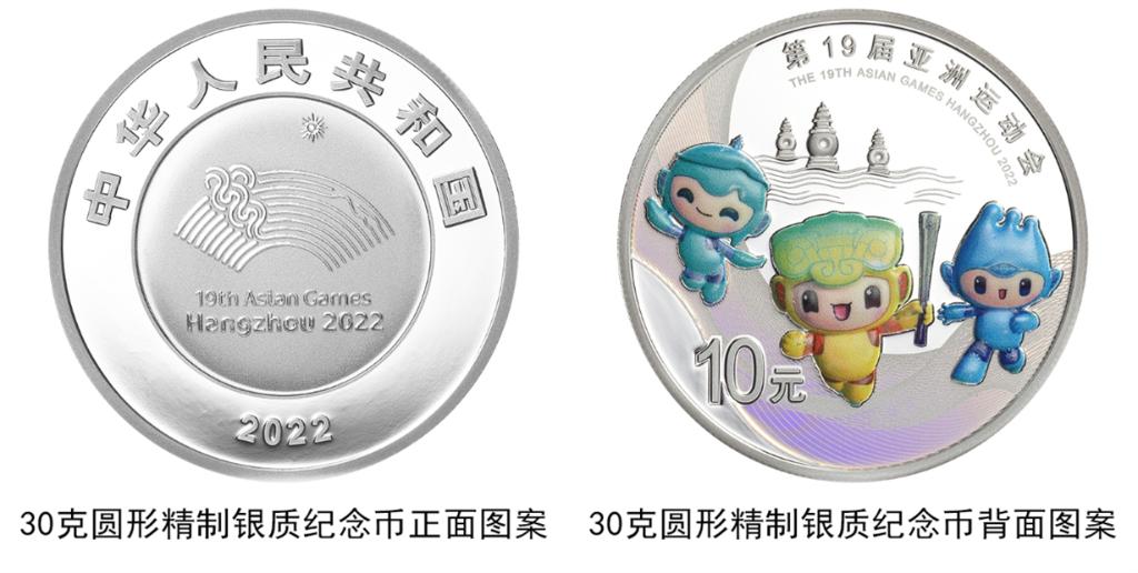 30克圓形銀質紀念幣背面圖案為第19屆亞洲運動會吉祥物,輔以火炬、三潭印月、飄帶等元素裝飾組合設計,并刊“第19屆亞洲運動會”等字樣。該紀念幣含純銀30克,最大發(fā)行量2萬枚。