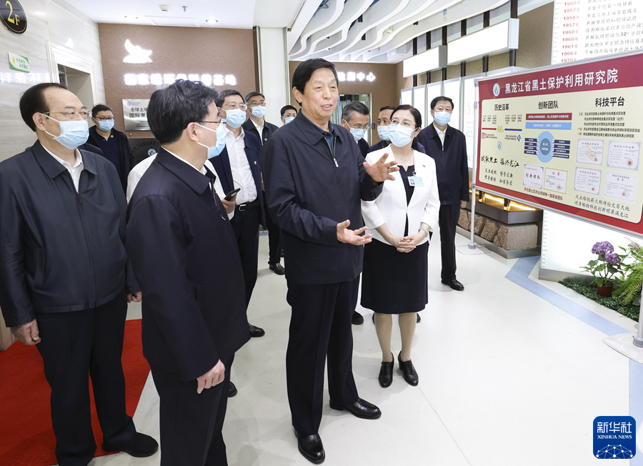 6月10日至13日,中共中央政治局常委、全國(guó)人大常委會(huì)委員長(zhǎng)栗戰(zhàn)書(shū)率全國(guó)人大常委會(huì)執(zhí)法檢查組在黑龍江檢查環(huán)境保護(hù)法實(shí)施情況,并就黑土地保護(hù)立法進(jìn)行調(diào)研。這是6月12日,栗戰(zhàn)書(shū)在黑龍江省黑土保護(hù)利用研究院調(diào)研。新華社記者 龐興雷 攝