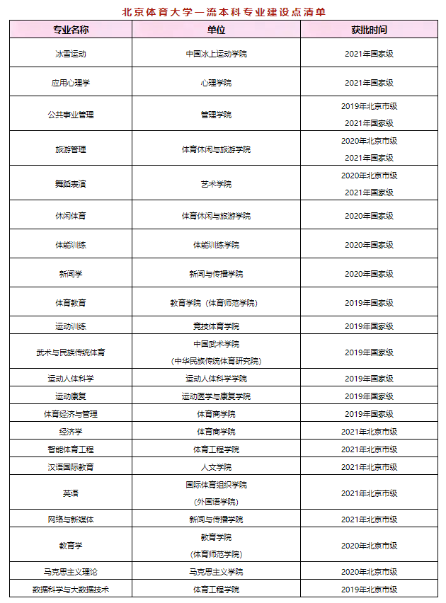 近日,教育部辦公廳公布了2021年度國家級和省級一流本科專業(yè)建設(shè)點名單。北京體育大學(xué)冰雪運動、應(yīng)用心理學(xué)、公共事業(yè)管理、旅游管理、舞蹈表演5個專業(yè)獲批國家級一流本科專業(yè)建設(shè)點,經(jīng)濟學(xué)、智能體育工程、漢語國際教育、英語、網(wǎng)絡(luò)與新媒體5個專業(yè)獲批北京市級一流本科專業(yè)建設(shè)點。自2019年教育部實施一流本科專業(yè)建設(shè)“雙萬計劃”以來,學(xué)校共獲批一流本科專業(yè)建設(shè)點22個,其中國家級14個、北京市級8個,在2022年本科招生專業(yè)中一流專業(yè)建設(shè)點已覆蓋75%以上,今年錄取的本科新生中將有超過90%的同學(xué)進入國家級、省級一流專業(yè)建設(shè)點學(xué)習(xí)。