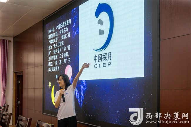 科普講座上,實踐隊隊員從“追本溯源,探月之端”“九天攬月,千年夢圓”“星辰大海,繼續(xù)前行”和“探月工程中的西工大力量”四個方面,用通俗易懂的語言和豐富生動的圖文,向同學們講述了中國的探月工程發(fā)展歷程,充分展現(xiàn)了航天人特別能吃苦、特別能戰(zhàn)斗、特別能攻關(guān)、特別能奉獻,永不放棄、銳意進取的航天精神。在活動過程中,同學們求知的眼睛,就像浩瀚宇宙中的粒粒星辰,閃閃發(fā)光。