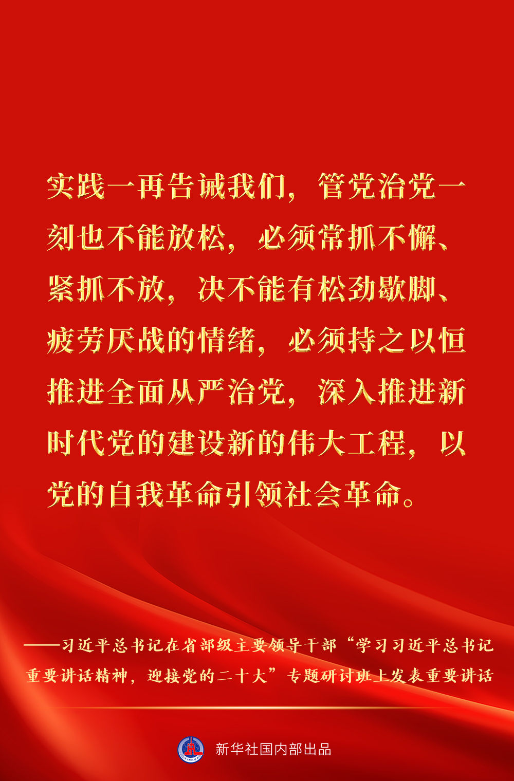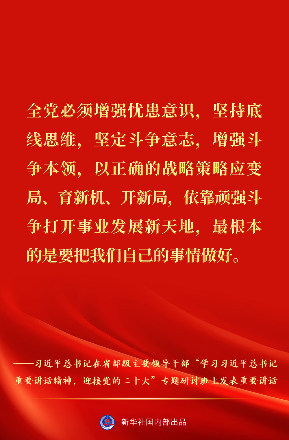 省部級主要領(lǐng)導(dǎo)干部“學(xué)習(xí)習(xí)近平總書記重要講話精神,迎接黨的二十大”專題研討班26日至27日在京舉行。中共中央總書記、國家主席、中央軍委主席習(xí)近平發(fā)表重要講話。一起來看金句速覽。