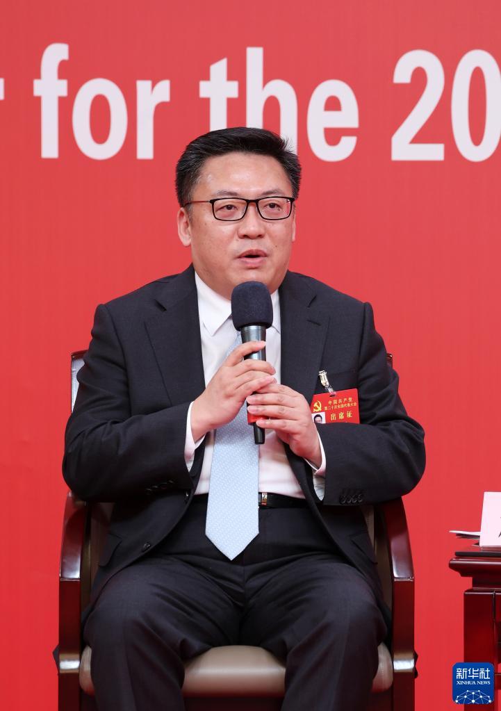 10月18日,中國共產(chǎn)黨第二十次全國代表大會新聞中心舉行集體采訪。黑龍江、上海、江蘇、浙江、安徽、福建、江西代表團新聞發(fā)言人出席,介紹代表團學習討論二十大報告情況,并回答記者提問。這是浙江省委常委、宣傳部部長王綱在回答記者提問。新華社記者 張玉薇 攝