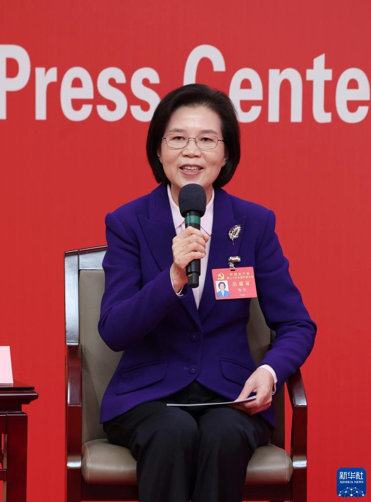 10月18日,中國共產(chǎn)黨第二十次全國代表大會新聞中心舉行集體采訪。黑龍江、上海、江蘇、浙江、安徽、福建、江西代表團新聞發(fā)言人出席,介紹代表團學習討論二十大報告情況,并回答記者提問。這是黑龍江省委常委、副省長,省政府黨組副書記沈瑩在回答記者提問。新華社記者 張玉薇 攝