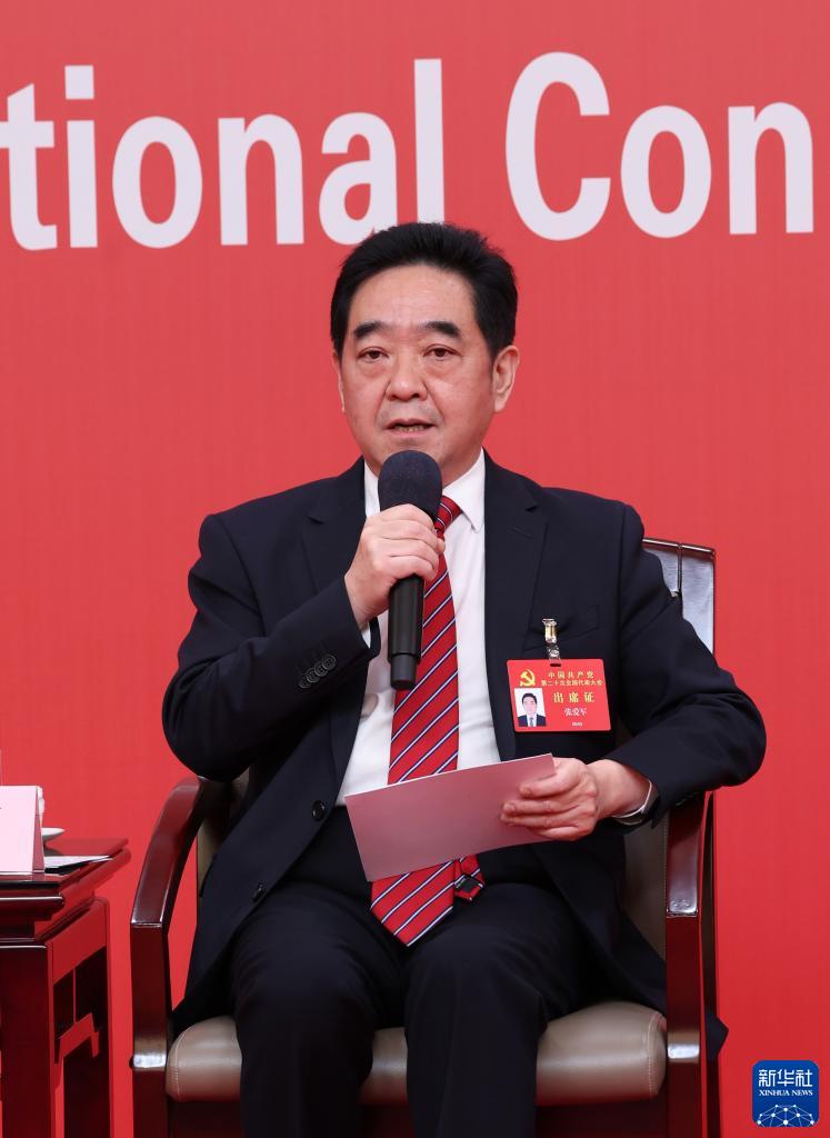 10月18日,中國共產(chǎn)黨第二十次全國代表大會新聞中心舉行集體采訪。黑龍江、上海、江蘇、浙江、安徽、福建、江西代表團新聞發(fā)言人出席,介紹代表團學習討論二十大報告情況,并回答記者提問。這是福建省委常委、宣傳部部長張彥在回答記者提問。新華社記者 張玉薇 攝