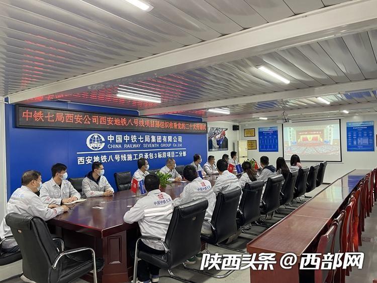 中鐵七局西安地鐵八號(hào)線項(xiàng)目部收看黨的二十大開幕會(huì)。