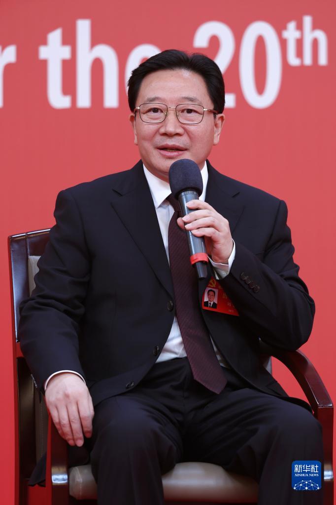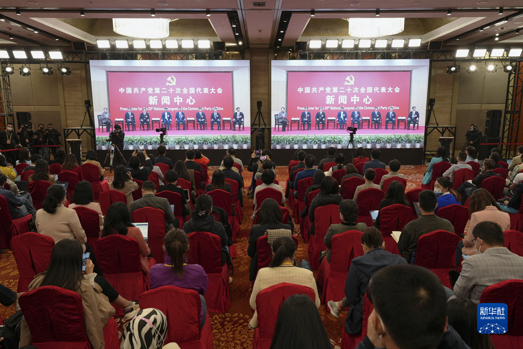 10月19日,中國共產(chǎn)黨第二十次全國代表大會新聞中心舉行集體采訪。山東、河南、湖北、湖南、廣東、廣西、海南代表團(tuán)新聞發(fā)言人出席,介紹代表團(tuán)學(xué)習(xí)討論二十大報(bào)告情況,并回答記者提問。新華社記者 張玉薇 攝