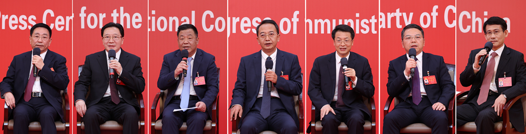 這7位新聞發(fā)言人是:山東省委常委、宣傳部部長白玉剛,河南省委副書記、政法委書記周霽,湖北省委常委、宣傳部部長許正中,湖南省委常委、宣傳部部長楊浩東,廣東省委常委、常務(wù)副省長張虎,廣西壯族自治區(qū)黨委常委、宣傳部部長孫大光,海南省委常委、常務(wù)副省長沈丹陽。他們結(jié)合實(shí)際,講述了黨的十八大以來,各地在經(jīng)濟(jì)發(fā)展、民生改善、生態(tài)文明等方面取得的歷史性成就、發(fā)生的歷史性變革。他們表示,連日來,各代表團(tuán)認(rèn)真學(xué)習(xí)討論黨的二十大報(bào)告,談體會、談?wù)J識、談感受,大家一致認(rèn)為,報(bào)告鼓舞人心、催人奮進(jìn)。代表們完全贊成、堅(jiān)決擁護(hù)這個(gè)報(bào)告,并表示未來要在各自的崗位上努力拼搏、銳意進(jìn)取,給黨和人民交上一份更加滿意的答卷。