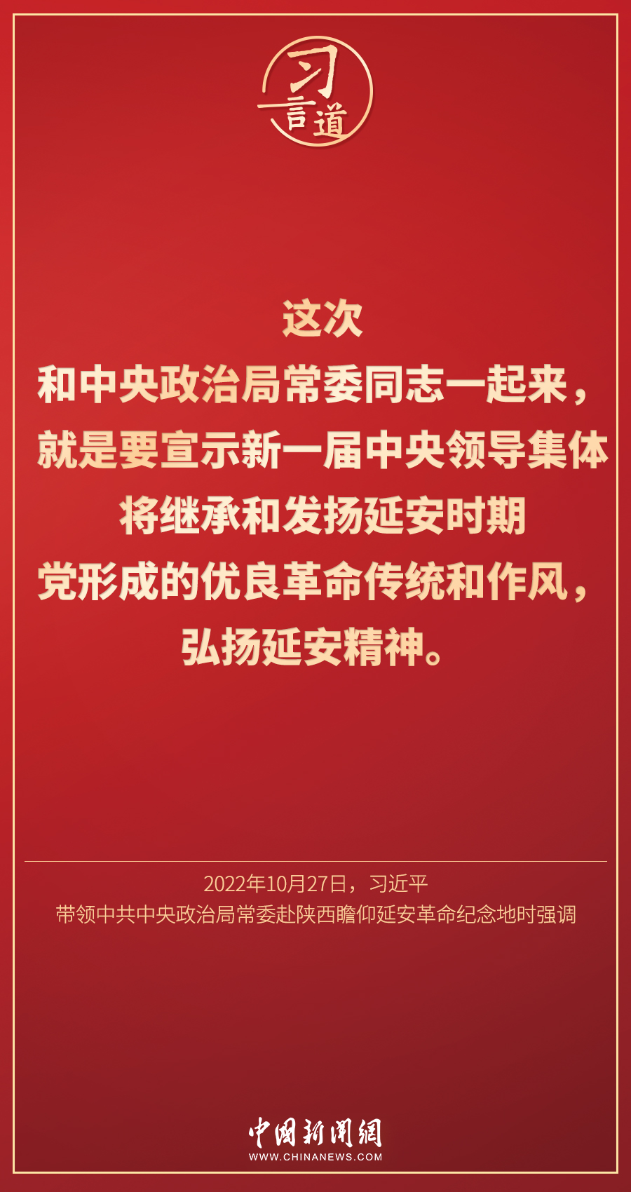 黨的二十大閉幕不到一周,中共中央總書記、國家主席、中央軍委主席習(xí)近平帶領(lǐng)中共中央政治局常委李強、趙樂際、王滬寧、蔡奇、丁薛祥、李希,專程從北京前往陜西延安,瞻仰延安革命紀(jì)念地。此行中,習(xí)近平多次談到延安精神——
