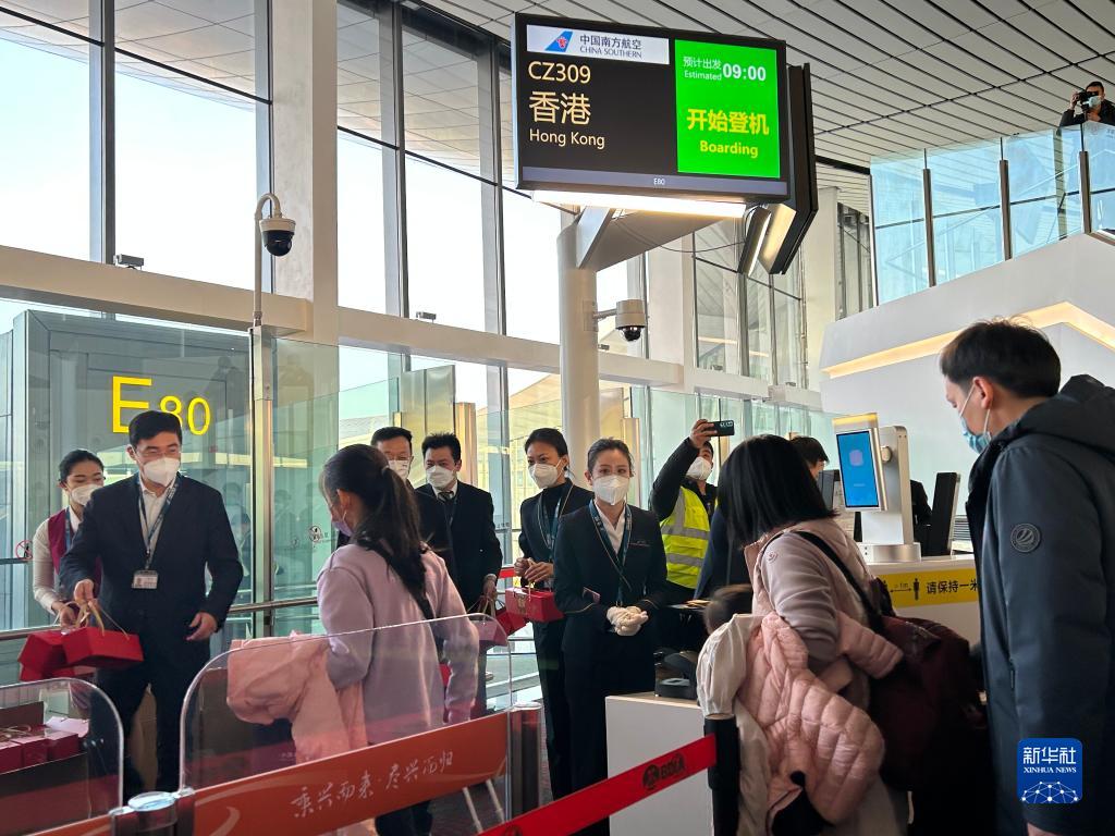 新華社北京1月17日電(記者羅鑫、吉寧)17日上午9時許,前往香港的CZ309航班搭乘100多名乘客騰空而起,中國“新國門”北京大興國際機(jī)場“暫停”近三年的國際及地區(qū)客運航班“重啟”,國際及港澳臺地區(qū)客運航線正式恢復(fù)。