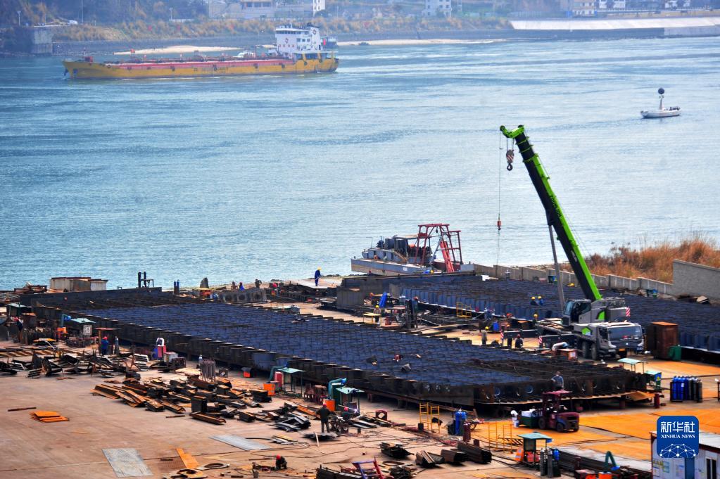 2月14日,湖北省宜昌市夷陵區(qū)樂(lè)天溪造船基地工人在加工制造大型貨船。新華社發(fā)(張國(guó)榮攝)