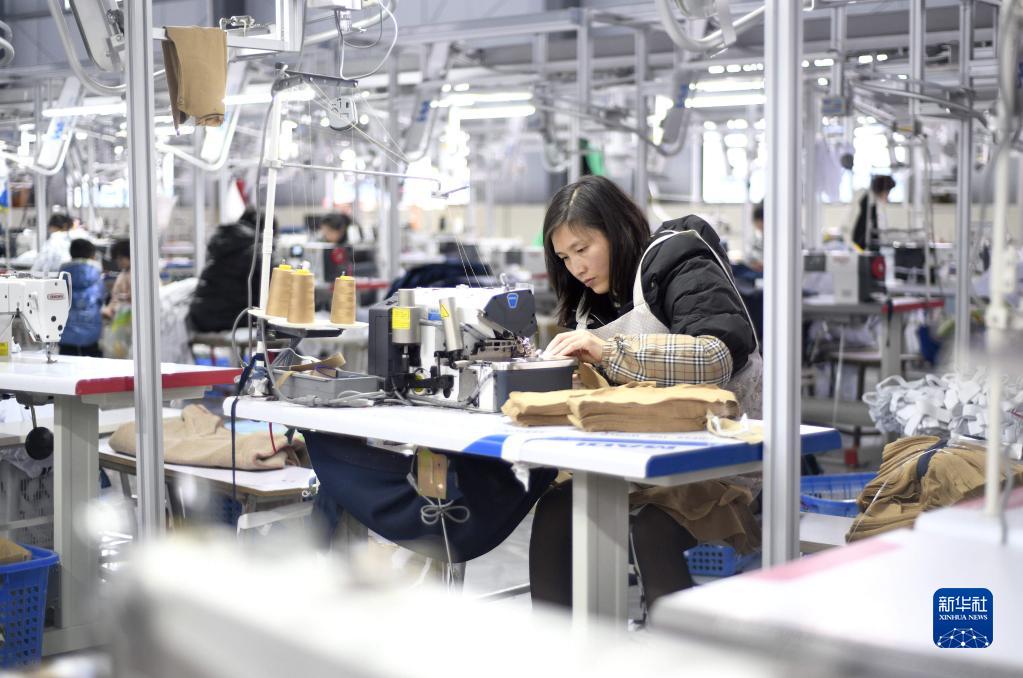 2月15日,工人在貴州省黔西南布依族苗族自治州安龍縣一家服裝企業(yè)生產(chǎn)車(chē)間加工服裝產(chǎn)品。新華社發(fā)(劉朝富攝)