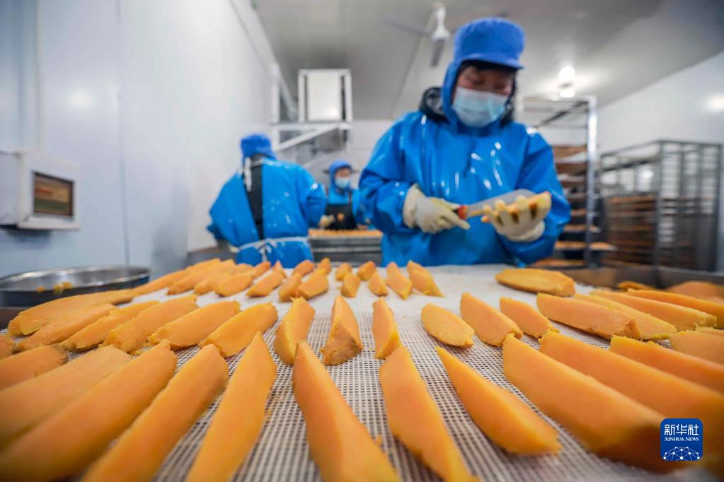 2月15日,工人在河北省遷西縣太平寨鎮(zhèn)一家紅薯加工企業(yè)車(chē)間加工手切薯干。新華社發(fā)(劉滿(mǎn)倉(cāng)攝)