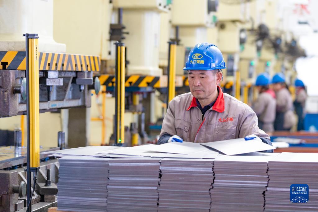 2月15日,在山東省濱州市博興縣店子鎮(zhèn)一家廚具生產(chǎn)企業(yè)車(chē)間內(nèi),工人在生產(chǎn)線(xiàn)上加工廚具。新華社發(fā)(初寶瑞攝)