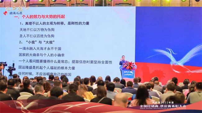 會議宣讀了《關(guān)于對2022年度優(yōu)秀經(jīng)銷商、供應(yīng)商進(jìn)行表彰獎勵的決定》,并對獲得年度重大貢獻(xiàn)獎、杰出貢獻(xiàn)獎、突出貢獻(xiàn)獎等獎項的優(yōu)秀經(jīng)銷商及供應(yīng)商進(jìn)行了現(xiàn)場頒獎表彰。