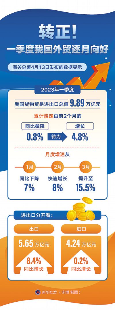 -7%、8%、15.5%,一季度,中國進出口增速逐月提升——保穩(wěn)提質(zhì),中國外貿(mào)加速跑。