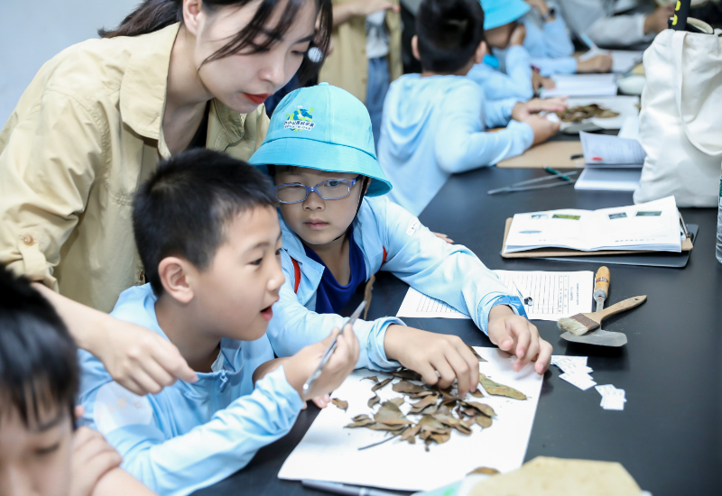 學(xué)生正在用心探究樹葉品種(錢江源國家公園管理局供圖)