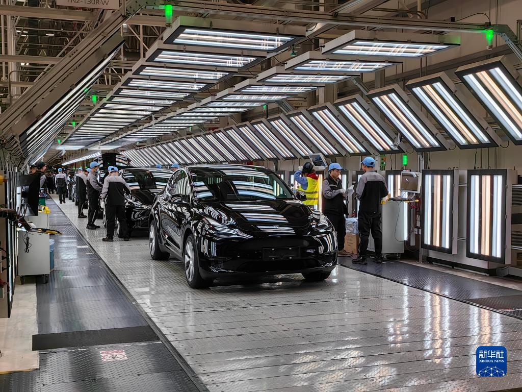 在特斯拉上海超級工廠,工人在車間內(nèi)忙碌(2月27日攝)。新華社記者 周蕊 攝