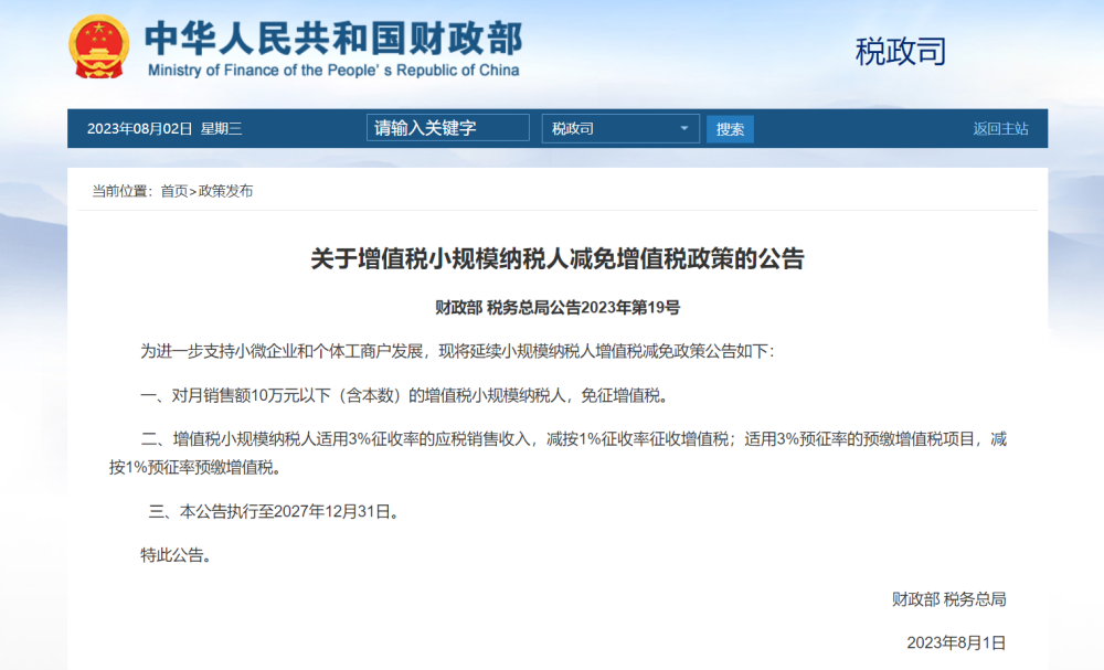 財政部 稅務(wù)總局公告2023年第19號
